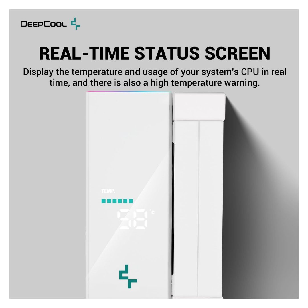 - Digital Display Panel: Real-time monitoring of CPU temperature and system load directly on the cooler.