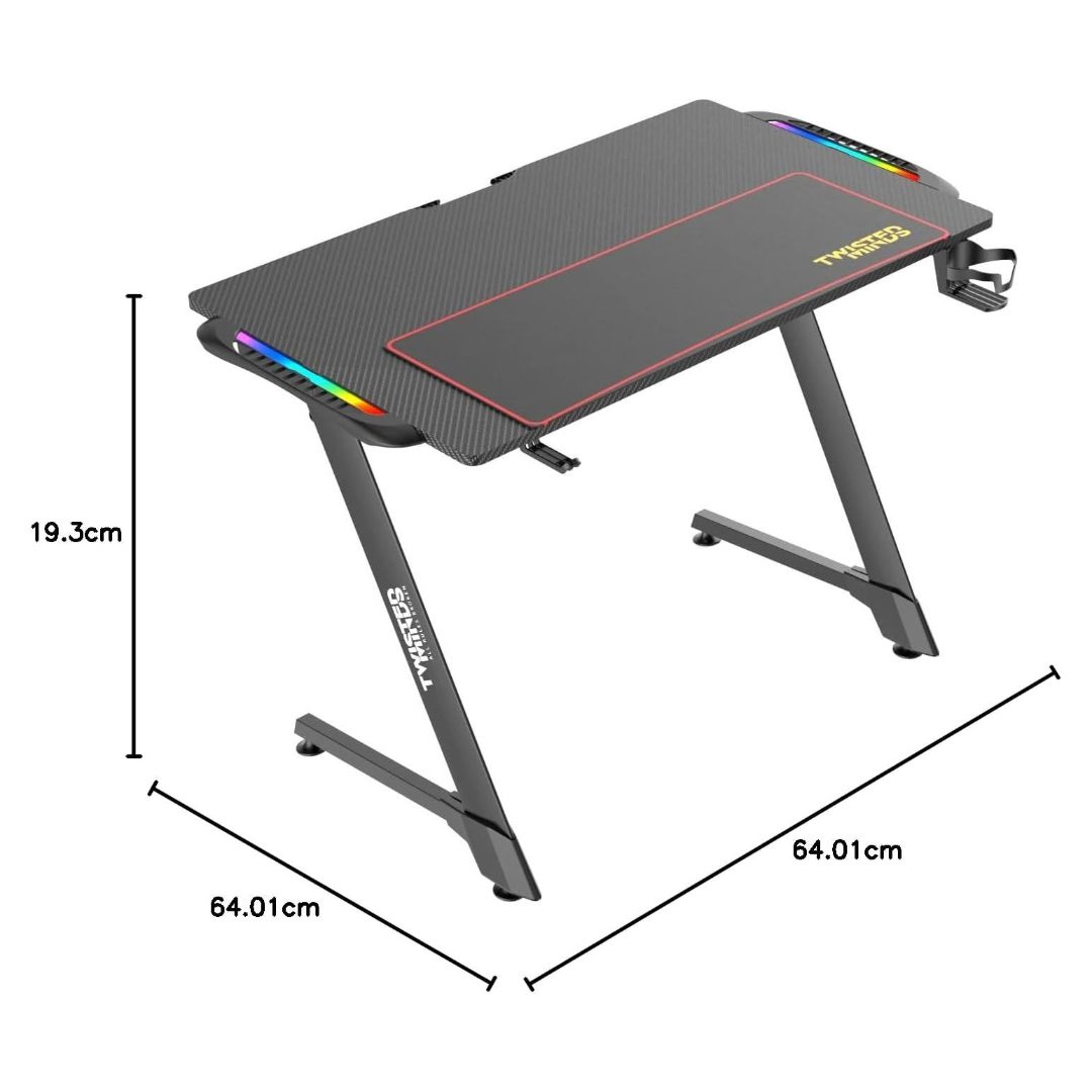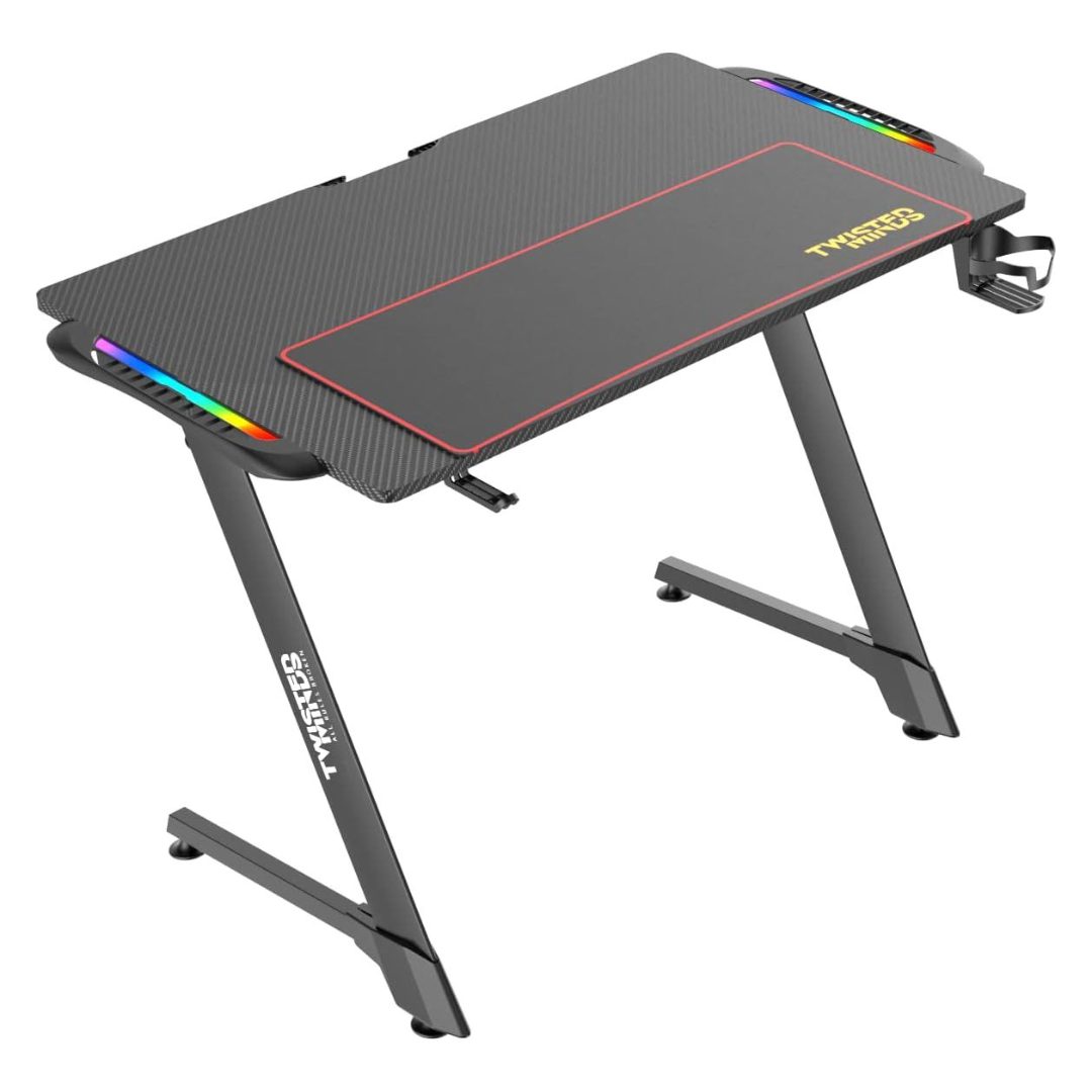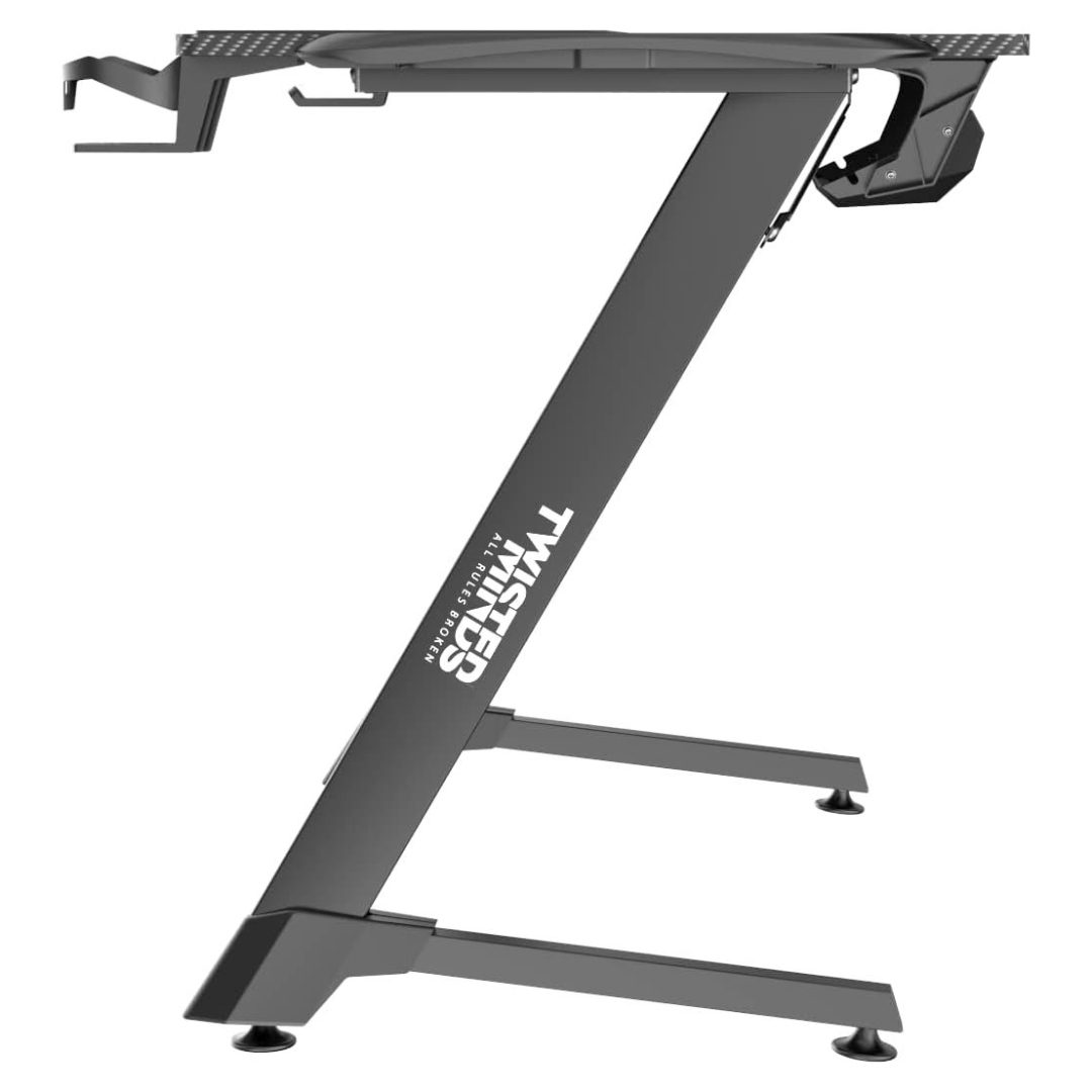 The Twisted Minds Z-Shaped RGB Gaming Desk TM-Z-1060-RGB is designed for gamers who demand style, durability, and functionality. Featuring a carbon fiber textured surface, robust Z-shaped steel frame, and integrated RGB lighting, it delivers both aesthetics and performance for any gaming setup.